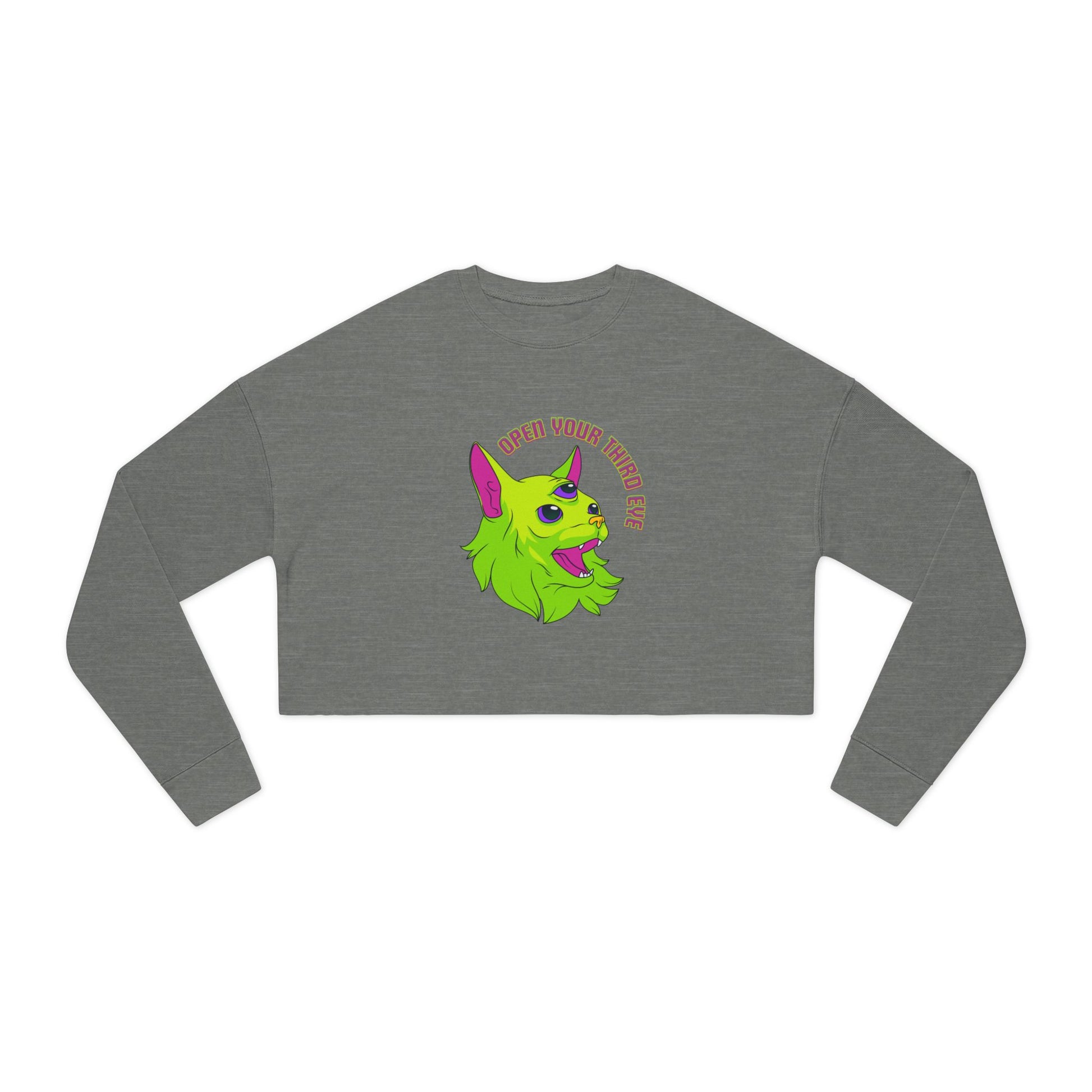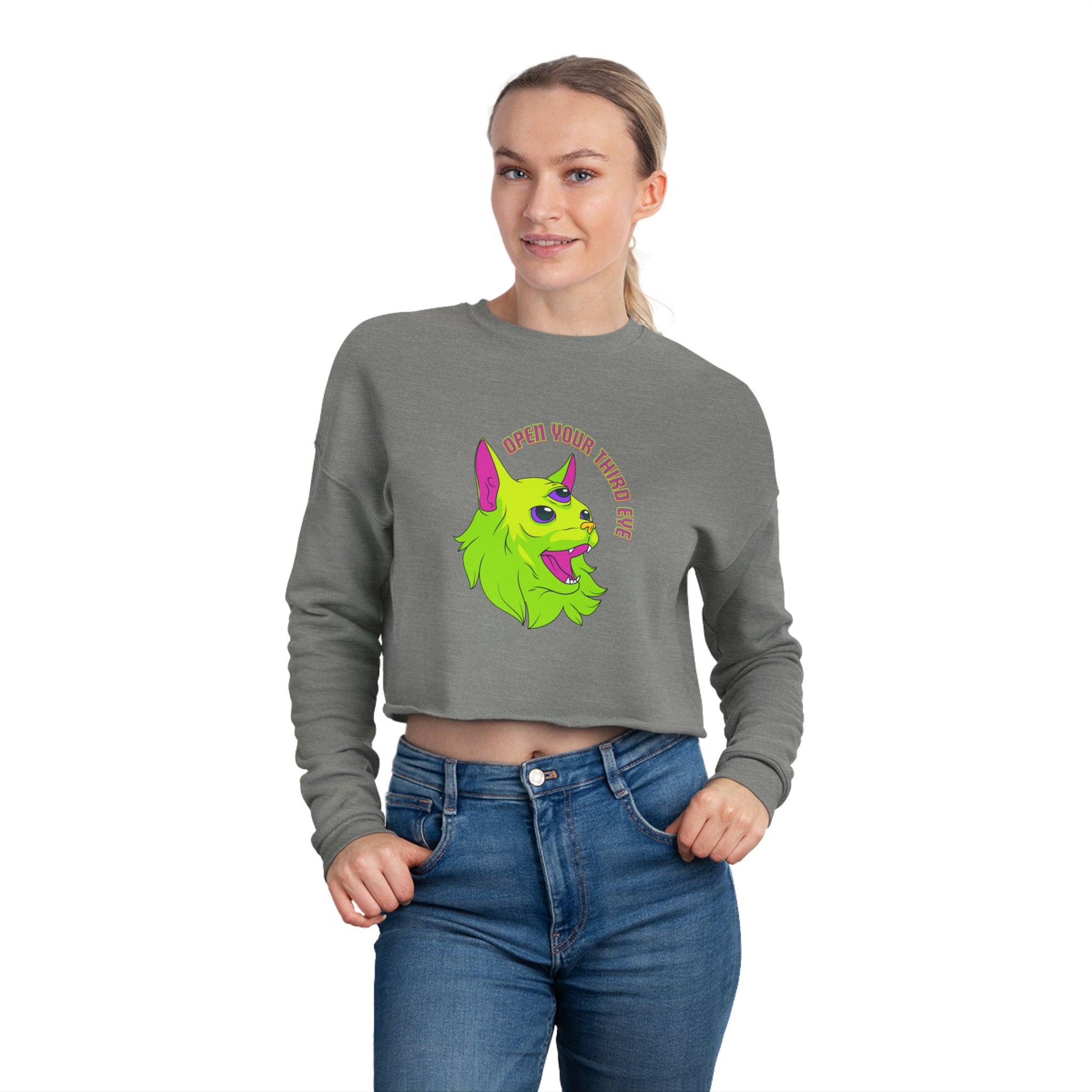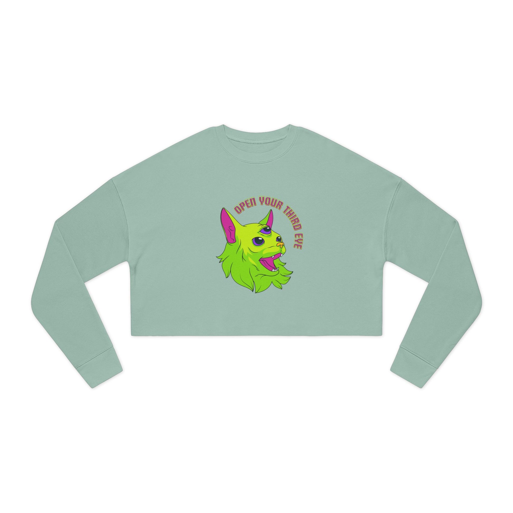 Open Your Third Eye - Alien Cat Cropped Long Sleeve Tee